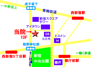 タクシーでお越しになる場合は、目標は、「新宿 アイタウン 郵便局」と、運転手の方に、